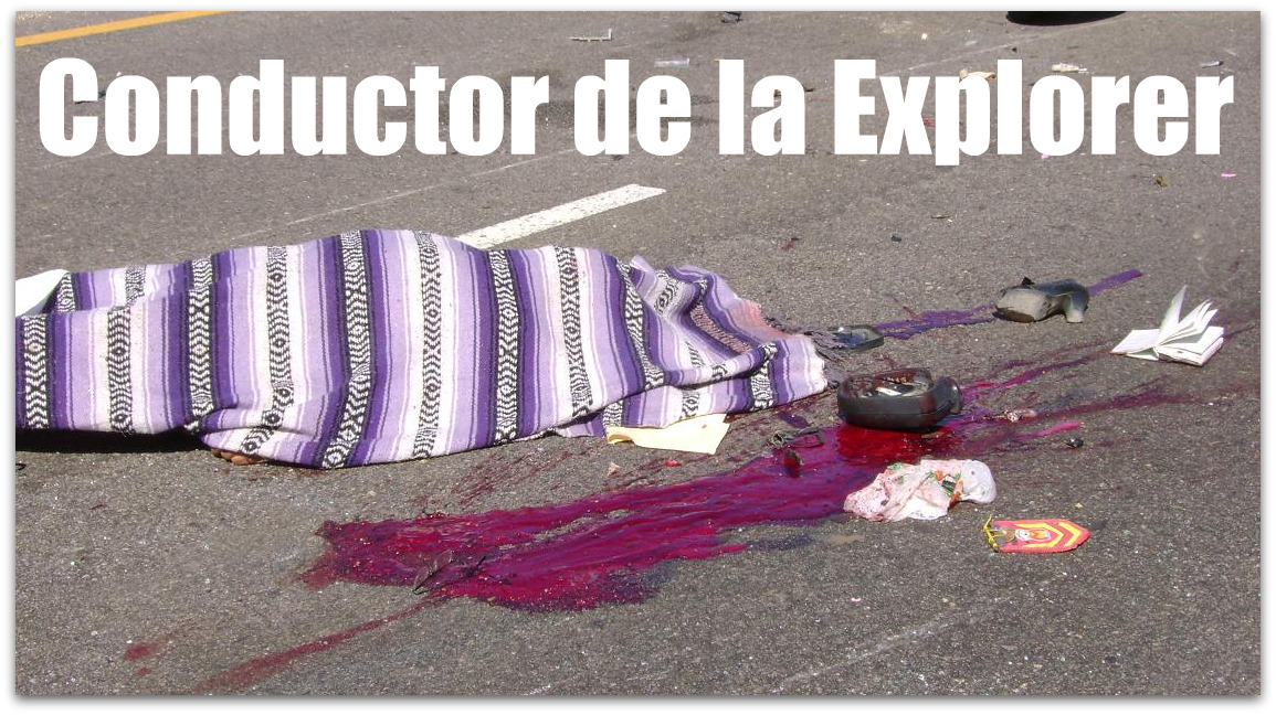 Lamentablemente los ocupantes de la camioneta Ford Explorer al no llevar colocados los cinturones de seguridad, salieron disparados del interior del vehículo cuando daba volteretas sobre el pavimento, con tanta violencia que el cuerpo de la señora María del Pilar Monteverde quedó a más de 30 metros de distancia sobre el pavimento, y el del su marido Leobardo García Sosa a solo dos metros.