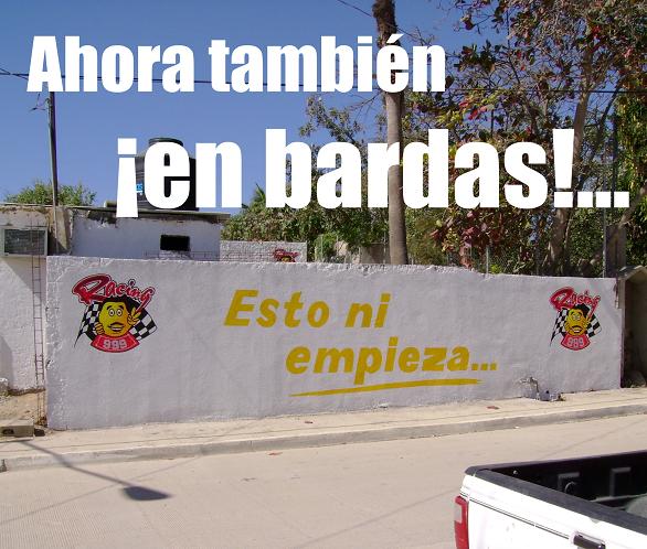 En una nueva fase de la cínica campaña del candidato del PRD a la alcaldía de Los Cabos, Antonio Agúndez Montaño, se ha iniciado con la pinta de bardas como la que presentamos en esta fotografía.