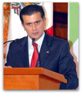 acompañado por su Secretario General, Luis Armando Díaz, con Víctor Guluarte Castro, Manuel Salgado Amador, Alfredo Porras Domínguez, Rodimiro Amaya Téllez y Ricardo Gerardo Higuera, que le pelearon y perdieron la gubernatura en el 2004-5, calificándola unos de oportuna y conveniente, y otros, de cínica, o entreguista, según el color del cristal con que lo vieron.