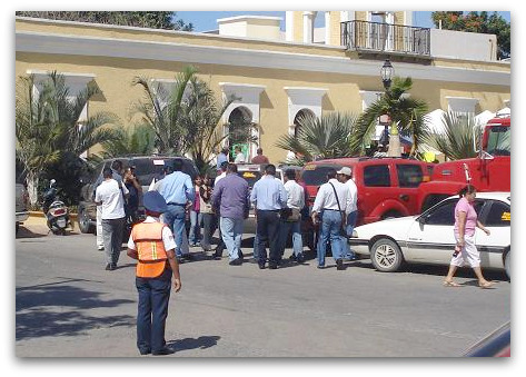 San José del Cabo, B.C.S.- Después de 10 días de ausentarse de sus oficinas en el palacio municipal de esta ciudad, hoy a las 11:15 de la mañana regresó el alcalde René Núñez Cosío rodeado de un discreto operativo de seguridad que fue preparado por el director de la policía Apolinar Ledesma Arriola.