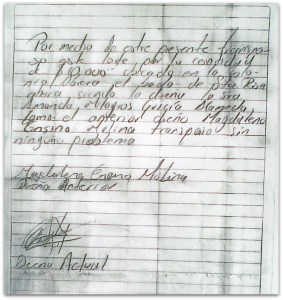 Y es por esta corrupción que la oferta, venta y traspasos de lotes en el vado Santa Rosa genera cantidades de dinero en efectivo no cuantificadas, tal y como se prueba con el recibo que anexamos a esta información, donde se da cuenta de una operación por 10,000.00 del traspaso de un sólo lote de los más de mil que hay en la zona.