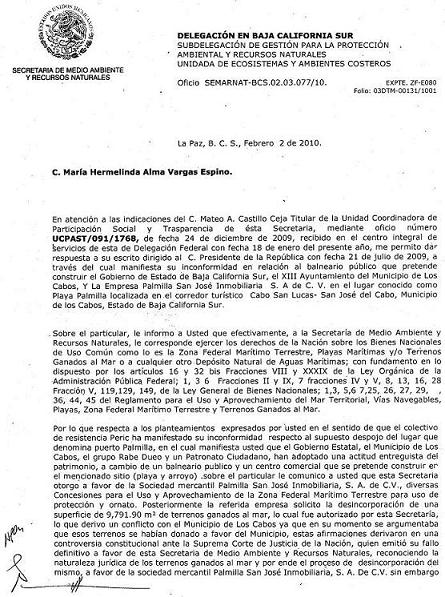 Desde el año anterior el gobierno del estado, a través de la Administración Portuaria Integral, había anunciado la construcción de un centro comercial y balneario en playa Palmilla, para lo cual incluso habían presentado planos en diversas reuniones sostenidas con autoridades del ayuntamiento de Los Cabos.
