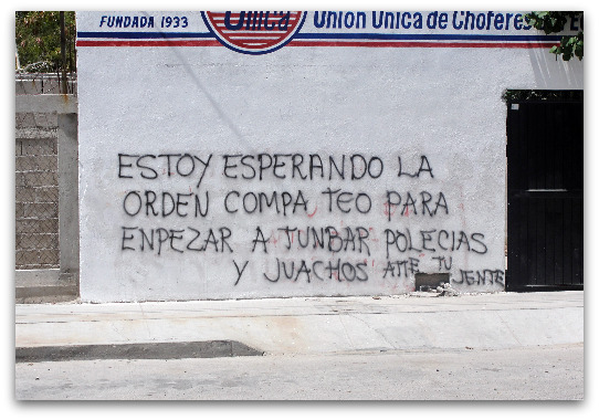 El texto que fue rayado en esta narcobarda es el siguiente: