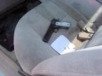 Éste sujeto al descender del automóvil intentó accionar su arma de fuego en contra del personal militar, no logrando su objetivo debido a que el cartucho no alcanzó alojarse en la recámara del cañón.