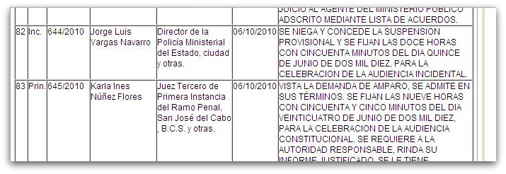 El viernes anterior, los funcionarios del ayuntamiento de Los Cabos que han sido convocados por la Procuraduría de Justicia bajo la causa penal CSL/102/PAT/2010, sobre el predio de 115 hectáreas de Inmobiliaria del Cabo, S.A. de C.V., obtuvieron un amparo federal, según se da a conocer en los estrados.