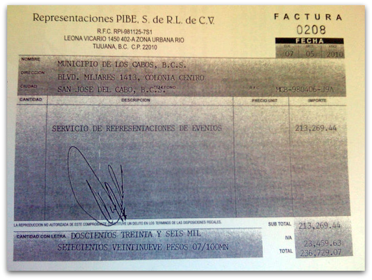C. Mirna Araceli Xibillé de la Puente para contratar a los artistas de las Fiestas Tradicionales San José 2010; para que se entendiera con ella de dicho pago.