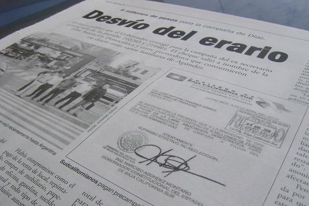 Luego que el semanario ZETA de Tijuana publicara en su más reciente edición supuestas pruebas de un acto de corrupción, en que el gobernador de Baja California Sur, Narciso Agúndez Montaño presuntamente “autorizó” la entrega de 5 millones de pesos a favor del precandidato del PRD al gobierno del estado, Luis Armando Díaz, la Secretaria de Finanzas analiza la posibilidad de responder a las acusaciones y acreditar que hubo una falsificación de documentos por parte de empleados de la propia dependencia.
