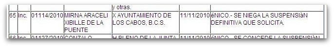Hoy en estrados del Juzgado Primero de Distrito se publica que a Mirna Araceli Xibillé de la Puente se le ha negado la suspensión definitiva que solicita. Pero esto es en el cuaderno incidental.