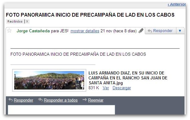 La misma noche del domingo 21 de noviembre, Jorge Castañeda Ibáñez y Luis Armando Díaz distribuyeron una fotografía panorámica del evento donde el gobernador Narciso Agúndez Montaño le levanta la mano a su «candidato oficial».