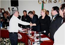 El mandatario sudcaliforniano llegó como invitado de honor a esta ceremonia, acompañado de Alfredo Porras Domínguez, Secretario General de Gobierno,en el salón de sesiones del Congreso del Estado que registró un lleno total.