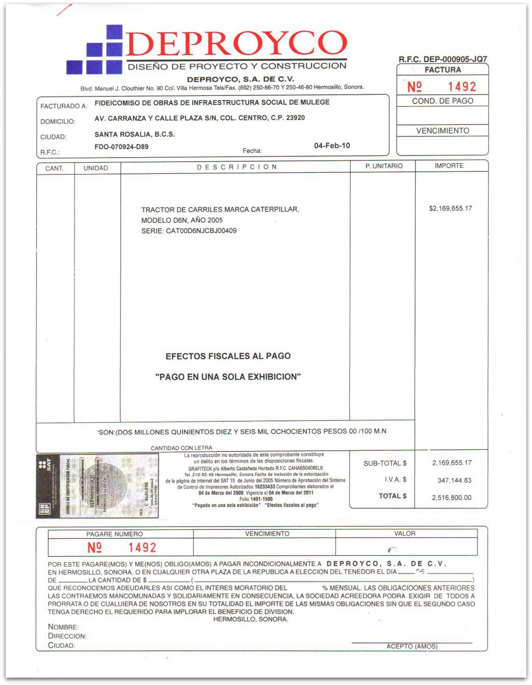 López Chinchias también aparece como intermediario en la compra a sobre precio de un tractor Caterpillar para el ayuntamiento de Mulegé, que fue adquirida en la empresa de un hermano de Miguel Millán López, esposo la actual tesorera municipal Santa Apodaca Peralta.