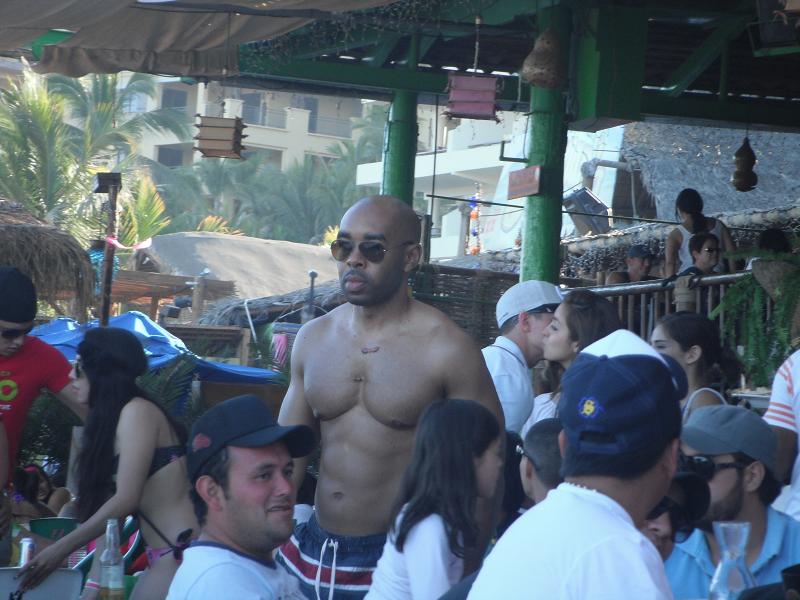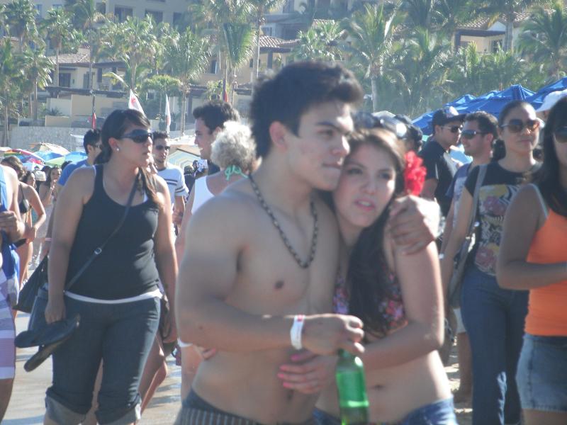 Dentro del bullucio de la zona de El Médano, la más concurrida de Cabo San Lucas, no observamos ningún incidente desagradable. Novios, grupos de amigos, y familias en convivencia sana y de mutuo respeto.