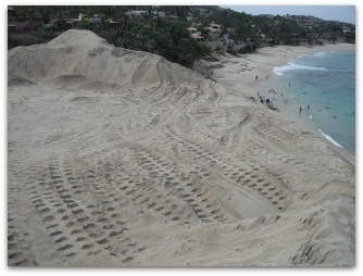 Esta tierra que trajeron de la piedrera de Santa Catarina y mañosamente la combinaron con arena del arroyo El Tule, fue colocada ahi por Inmobiliaria Palmilla San José, en un intento más por privatizar el sitio.