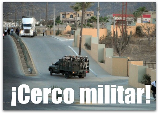Hoy por la tarde se vio a elementos militares tanto en Cabo San Lucas como en esta ciudad, tomando posiciones y cercando los lugares en los que estará el presidente Calderón.