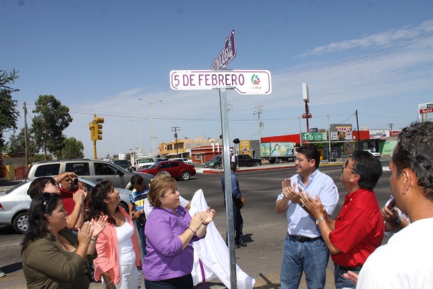 La mañana del sábado la alcaldesa y los funcionarios develaron las primeras placas de la nomenclatura en el Bulevard 5 de febrero y Bulevard Agustín Olachea y cinco de Febrero y Forjadores en ambos sentidos.