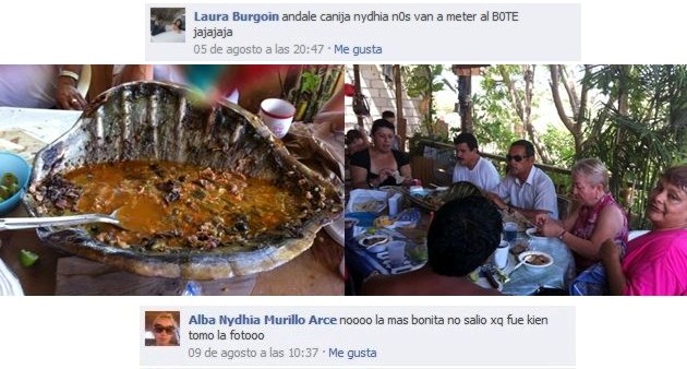 El domingo Nidia Murillo publicó en su Facebook las fotos que te adjunto en un álbum que se llama “En casa de mi tita Susanita” donde se observa perfectamente que están comiendo caguama. Aparentemente esto sucede en Santa Rosalía.