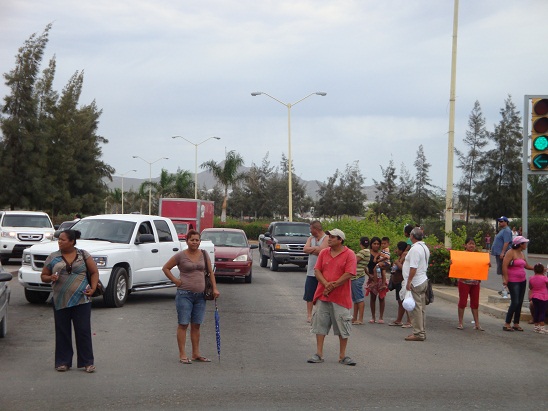 Cabo San Lucas, B.C.S.- Por espacio de tres horas, la lider Rosario Cabanillas que es operadora del PRD y representante del alcalde Antonio Agúndez Montaño en la invasión conocida como El Caribe Bajo, acompañada de cerca de trescientos manifestantes bloquearon la carretera federal en el entronque del bulevar Constituyentes justo en los semáforos de la delegación municipal en este puerto.