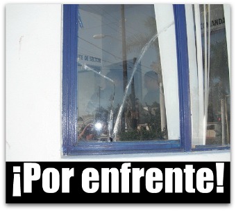 grupo de vándalos arremetió a pedradas contra las instalaciones policiacas. Ahí se encontraba solamente un policia de guardia que solicitó refuerzos ya que todos los cristales de esa sub comandancia fueron rotos.