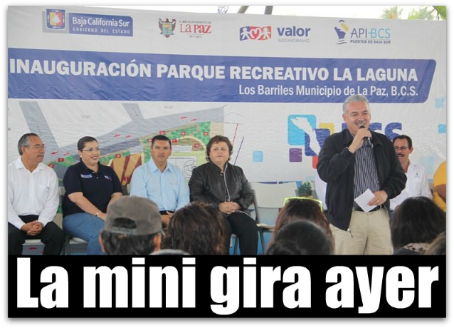La Paz, B.C.S.- En el marco de la inauguración del parque recreativo “La Laguna” en la delegación de Los Barriles que el Gobierno del Estado a través de la Administración Portuaria Integral (API) entregó a la delegación, la alcaldesa de La Paz, Esthela Ponce Beltrán agradeció al gobernador, Marcos Covarrubias Villaseñor, la aportación del gobierno del Estado para la gente de la delegación.
