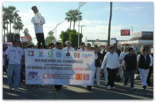 Iniciaron las actividades a partir de las 8:30 de la mañana con una marcha que partió de la maquiladora a través del bulevar Agustín Olaechea Avilés con la participación de autoridades municipales de sector salud, maestros y alumnados de instituciones educativas que marcharon con carteles, pancartas y lonas alusivas a las acciones preventivas para evitar contagios y transmisión del VIH.