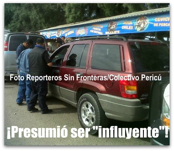 El hombre «influyente» llamado Sergio Rivera Payares, no podía sostenerse por si solo por el estado etílico en el que se encontraba. En su vehículo llevaba un arma calibre 9mm, un paquete de cervezas, una chamara oficial con las siglas A.F.I. y un libro acerca de las profecías mayas del autor Steve Alten. El detenido fue llevado a la PGJE para su investigación