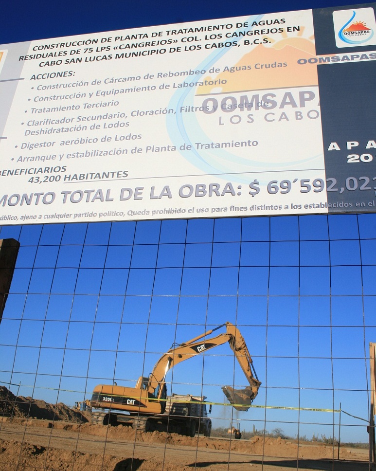 Cabo San Lucas, B.C.S.- Construir la planta de tratamiento de Los Cangrejos no es una ocurrencia del Organismo Operador del Agua Potable, sino el consenso de los 3 niveles de Gobierno (Municipal, Estatal y Federal) para resolver el añejo problema de contaminación por derrame de aguas negras en el puerto de Cabo San Lucas, en particular de más de 10 mil familias que hoy en día no pueden conectarse al drenaje municipal por el déficit que se tiene en infraestructura sanitaria.