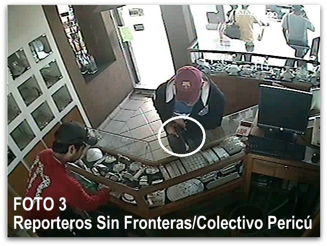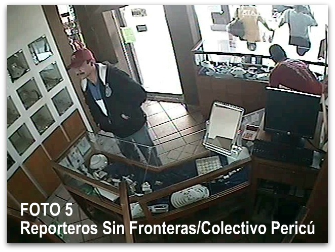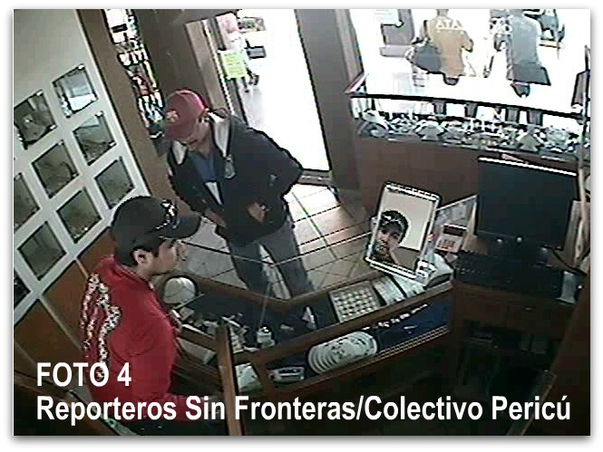 De acuerdo a la secuencia fotográfica que les presentamos numerada, se puede observar bien definido el rostro de los dos sujetos que ingresan portando gorras a la joyería fingiendo ser clientes.