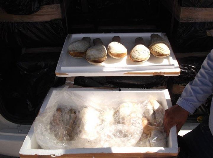 La Paz, B.C.S.- El Programa de Inspección y vigilancia, continúa dando resultados al incautar 1.5 toneladas de almeja generosa, actuación que se llevó a cabo al detectar un cargamento 1,555 almejas transportadas en cajas con enfriamiento para mantener la almeja viva hasta su destino, el cual se pretendía ser enviado a la ciudad de Tijuana, de donde se estaría exportando principalmente al mercado de Asía y Estados Unidos.