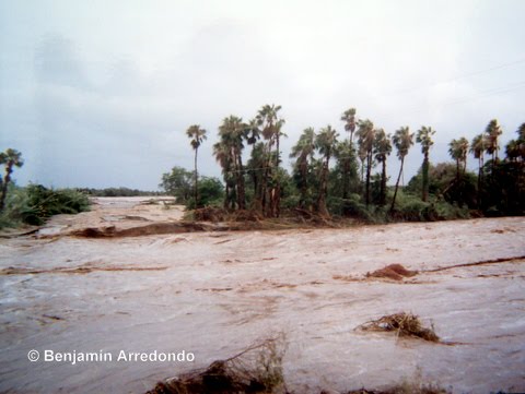 Los ríos aparecían en los catalogados como arroyos que siempre estaban secos y que todo indicaba secos estarían siempre, sin embargo, entraba el huracán y aquí, como lo vemos en la foto, el arroyo de El Tule se convertía en un auténtico río por varios días. Recuerdo que una vez, apenas comenzaba el huracán cuando regresaba con un grupo de turistas, al cruzar por El Tule, el autobús era ligeramente arrastrado por la fuerza del agua… y apenas estaba comenzando.
