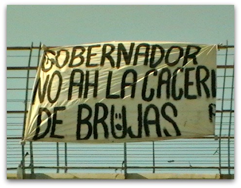 INFORMENSE BIEN QUE QUIERE DECIR CACERIA DE BRUJAS ANTES DE COLGAR ESAS MANTAS. ESA FRASE SE APLICA CUANDO ALGUIEN ESTA ENCERRADO Y QUE LE FABRICAN DELITOS ABUSANDO DEL PODER QUE SE TIENE EN EL MOMENTO. Y ESTE SR AGUNDZ ES POR BIEN SABIDO QUE TIENE ACUSACIONES EN SU CONTRA ANTE EL M.P.Y AHORA RESULTA QUE SI ANDA SUELTO QUE PORQ NO LE HACEN NADA Y ESTA EN EL BOTE Y NO LES GUSTA. ENTONCES NO SE QUEJEN SI NOS SIGUEN ROBANDO COMO PATRIA.