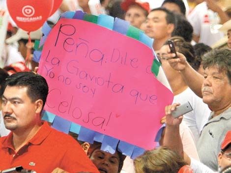 Así es que de gran favorito llegó Peña Nieto el sábado pasado a La Paz, donde se reportan unos 7 mil asistentes (con 5 mil se llena ese estadio), lo que es una entrada muy buena para los antecedentes que se tienen, ese es el record prácticamente, fueron a ver a un artista de la TV con su esposa La Gaviota, nomás hay que recordar las caras de los fanáticos, se parecían a los que fueron a ver al grupo ‘Pesado’ o Joan Sebastián o Vicente Fernández; así es el efecto de la televisión, y los siguen para que les firmen autógrafos y se tomen la foto con ellos, así funciona la adoración hacia los idolos, por parte de las multitudes, que se contagian hasta la histeria.