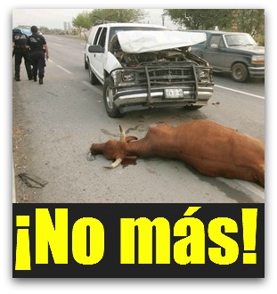 Bueno aunque varios de los que comentaron aqui se consideran que valen menos que una vaca flaca y llena de garrapatas, les recuerdo que estamos en mexico y no en la india, y aqui en mexico vale mas la vida de una persona, sea cual sea su condicion, que la un animal, asi que no se puede poner en peligro la vida de las personas que circulan por las carreteras del estado, yo personalmente he tenido 2 accidentes con semovientes, y les comento que no es nada agradable destrozar el vehiculo con algo que no deberia de estar sobre la carretera.
