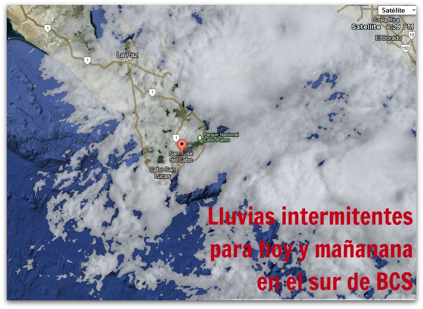 Cabo San Lucas, B.C.S.- Desde la madrugada de hoy lluvias intermitentes han caido sobre éste puerto y la ciudad de San José del Cabo, lo que ha traido alegría a las familias debido a que son las primeras lluvias en forma del presente año. El puerto ha sido cerrado a la navegación hasta nuevo aviso, por lo que las actividades acuáticas y recreativas se encuentran suspendidas al momento.