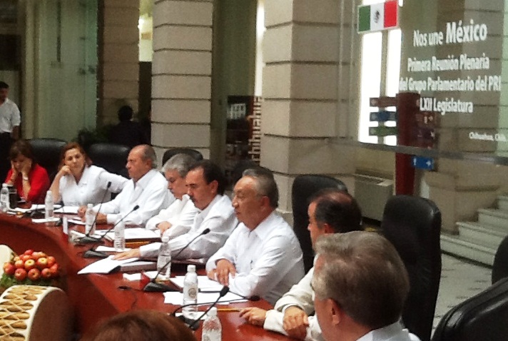 Chihuahua, Chih.- El líder de la CROC Isaías González Cuevas tuvo una destacada participación en la primer reunión plenaria de los Senadores del grupo parlamentario del PRI a la LXII legislatura, que fue presidido por su coordinador Emilio Gamboa Patrón, y bajo la anfitrionia del Gobernador del Estado, Lic. Cesar Duarte Jáquez.
