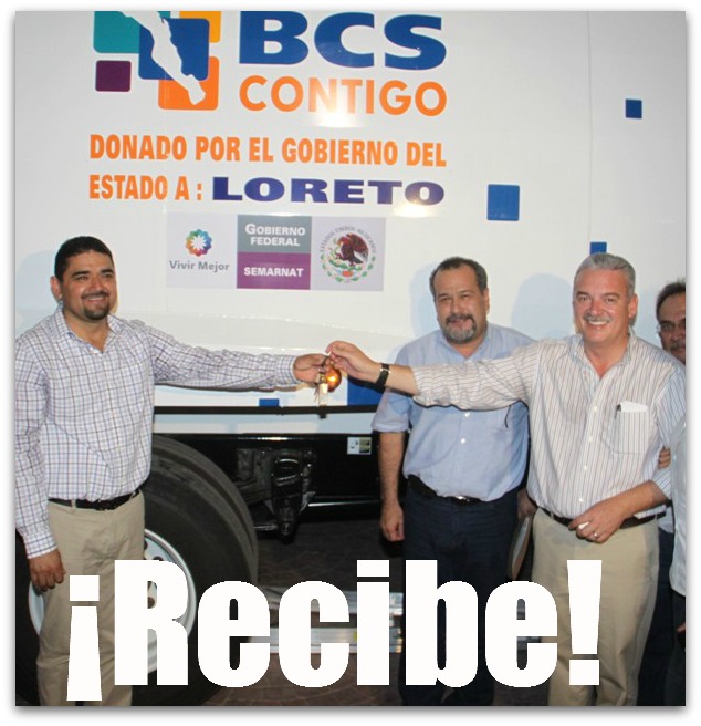 En este acto, el Gobernador Marcos Covarrubias Villaseñor entregó un camión recolector de basura modelo 2012 al Ayuntamiento de Loreto, en donde con recursos compartidos con la  Semarnat del orden de un millón 304 mil pesos se logró su adquisición para el beneficio de los Loretanos.