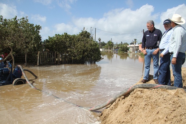 Igualmente, la SAGARPA opera los trabajos de desazolve de algunas vialidades que resultaron afectadas por estancamiento de agua de lluvias y agua de mar.