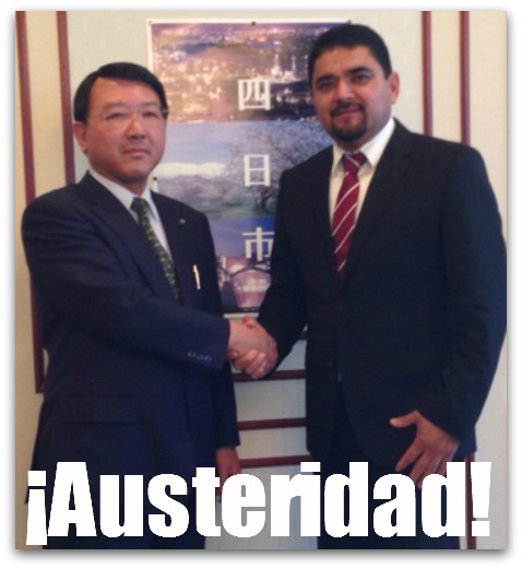 no hay dinero para pagar la nómina de los trabajadores pero si tiene para sus viajes a japón…. y viaje que en realidad al tiempo de su mandato no servira de nada…