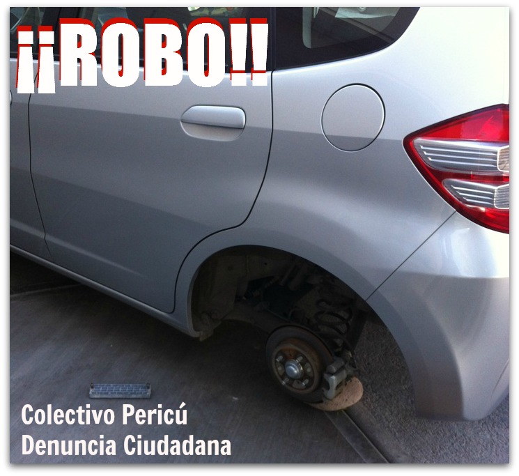 La Paz, B.C.S.- Ayer a las tres de la tarde, un ciudadano se dio cuenta de que había sido objeto del robo de la llanta de su automóvil. Lo anterior ocurrió en las calles San Pedro entre Mulegé y La Paz de la colonia Bellavista. El automóvil es un Honda Fit 2012. ¡Urge mayor vigilancia en la zona! (Denuncia Ciudadana).