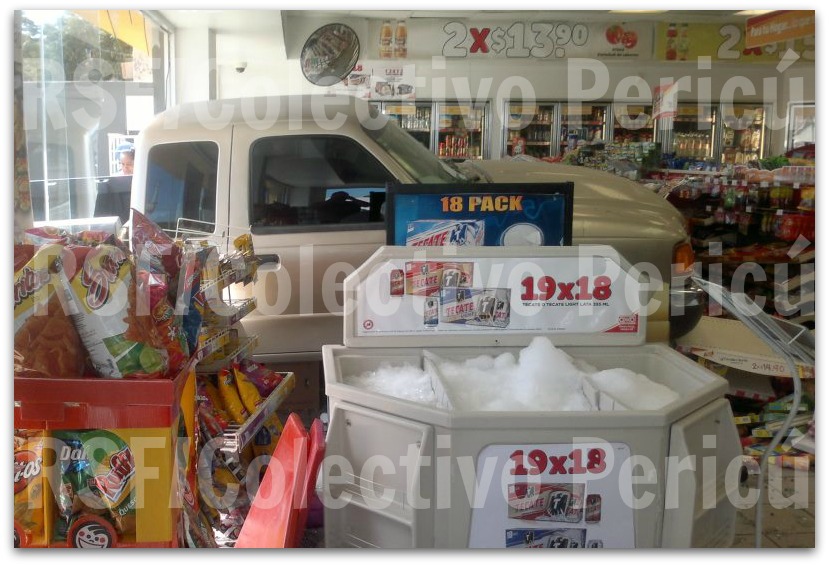 Por fortuna no hubo desgracia qué lamentar, excepto los daños materiales causados por el inusual ingreso al OXXO.