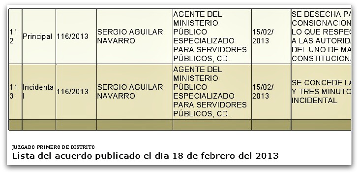 En el dictamen del caso, a través del secretario de Acuerdos, Francisco Dante Coronado Díaz Bonilla, el Juzgado notificó que se había resuelto que “las pruebas presentadas acreditaban fehacientemente el cuerpo del delito de despojo”, y fundado y con apoyo de lo dispuesto por la Ley de Amparo, ordenó al juez Hugo Flores Bustos -sucesor de Sergio Aguilar Navarro- obsequiar las correspondientes órdenes de aprehensión en la causa penal 102/2012, y anotarlas como testimonio de la resolución en el libro de gobierno.