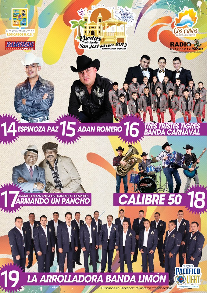 San José del Cabo, B.C.S.- El titular de Desarrollo Social del municipio y responsable de la organización de las Fiestas Tradicionales de San José del Cabo, Luis Armando Díaz, dio a conocer de manera oficial el elenco artístico que se presentará de manera gratuita.