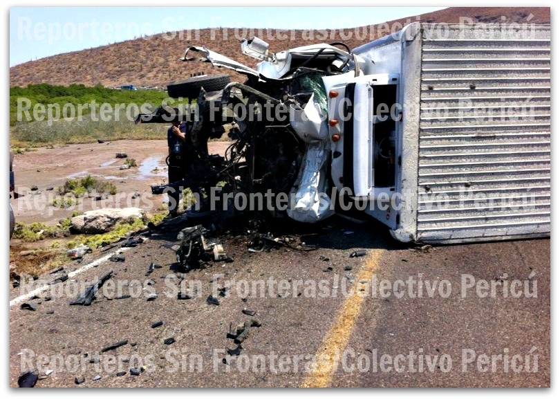 2 - 1 choque carretera a pichilingueLa Paz, B.C.S.- Tal y como les hemos informado hace un momento, ocurrió un choque de frente entre dos pesadas unidades con saldo de uno de los choferes muerto y el otro herido de al parecer no de gravedad, pero va a revisión.