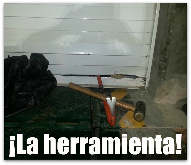Cautelosamente se acercaron al sitio indicado y sorprendieron a un sujeto en plena faena que intentaba abrir la puerta de seguridad del almacén en la parte trasera, para lo que utilizaba un marro y cincel.