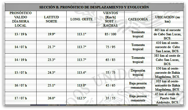 Al momento no se observan posibilidades de que haya un impacto directo sobre el municipio de Los Cabos.