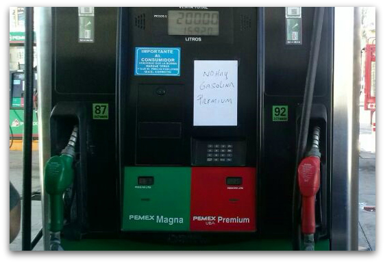 De plano la cadena ORSAN dijo que ninguna de sus estaciones cuenta con ese tipo de gasolina conocida como PEMEX PREMIUM y, de acuerdo al testimonio de uno de los despachadores, se debe a la descompostura de la embarcación que tendría que llegar a Punta Prieta en La Paz desde hace dos días, por lo que no se descarta desabasto generalizado.