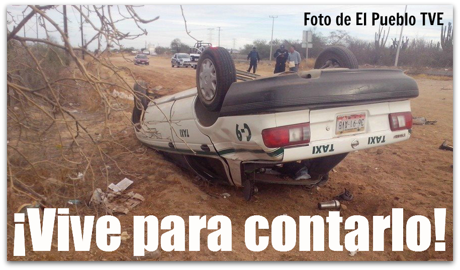 2 - 1 ACCIDENTE TAXILa Paz, B.C.S.- Poco antes de las ocho de la mañana de ayer, el conductor de un Taxi del sitio Contiental perdió el control de la unidad, para salirse de la cinta asfáltica a la altura de la gasera y después volcarse.