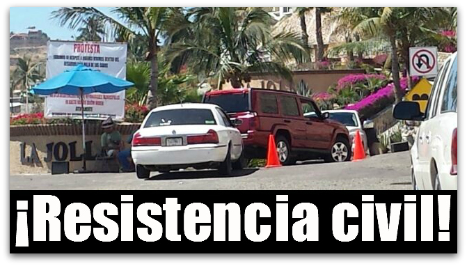San José del Cabo, B.C.S.- Residentes del fraccionamiento LA JOLLA, que desde ayer iniciaron un bloqueo para impedir que maquinaria pesada continúe con la construcción de una torre que, ahora se sabe, es de un hotel de nombre BELAIR que planean eregir en una zona residencial, piden al ayuntamiento de Los Cabos que sea transparente y de a conocer el proyecto en su totalidad porque persisten muchas dudas al respecto.