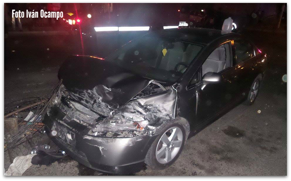 El vehículo contra el que se impactó es un Honda Civic modelo 2006, sedán de color gris, conducido por Diana Flores López, de 30 años de edad, que fue trasladada por la Cruz Roja también al Hospital Salvatierra, donde la atendieron por un esguince cervical, policontundida y contusión toráxica, por lo que fue internada y quedó bajo observación médica.
