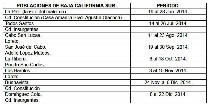 La Paz, B.C.S.- La Secretaría de la Defensa Nacional a través de la Comandancia de la 3/a. Zona Militar, en coordinación con el Gobierno del Estado de Baja California Sur, hace una atenta invitación a la población en general para que participe en la “Campaña de Canje de Armas de Fuego”; que se llevará a cabo en diversos lugares del estado, para el efecto personal militar establecerá módulos de canje de armas que darán servicio a la ciudadanía en un horario de 0900 a 1800 horas en las fechas y lugares que se indican: