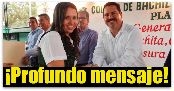 Ante los alumnos egresados de la Telesecundaria No.36 Carmen Fisher Cota, el Funcionario local hizo énfasis en que muchos de los alumnos que concluyen sus estudios y en el próximo ciclo escolar estarán en las escuelas de nivel preparatoria, todo este logro es verdaderamente suyo, pero una gran parte también le pertenece a otra personas que hacen lo necesario para ustedes acudan y obtengan el conocimiento, ese es sus padres, a ellos deben reconocerles de manera digna su esfuerzo.